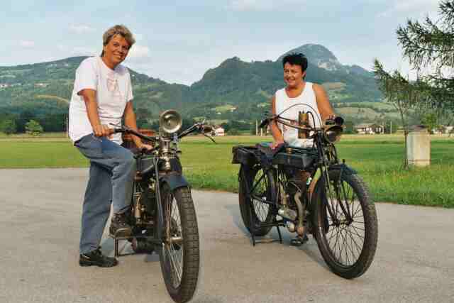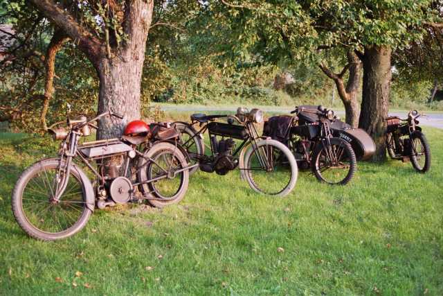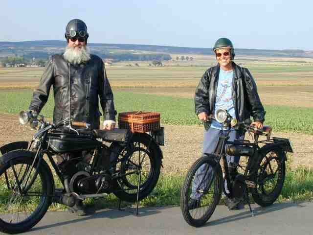 Urlaub im Perigord Herbst 2017 mit 95 Jahre alten Riemenmotorrädern